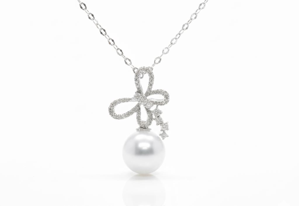 當蝴蝶展翅的瞬間,優雅與夢幻悄悄降臨。 這款項鏈以閃耀的水鑽蝶翼襯托中央一顆天然珍珠,設計靈感源自「化繭成蝶」的優雅轉變,象徵著蛻變、自信與自由。