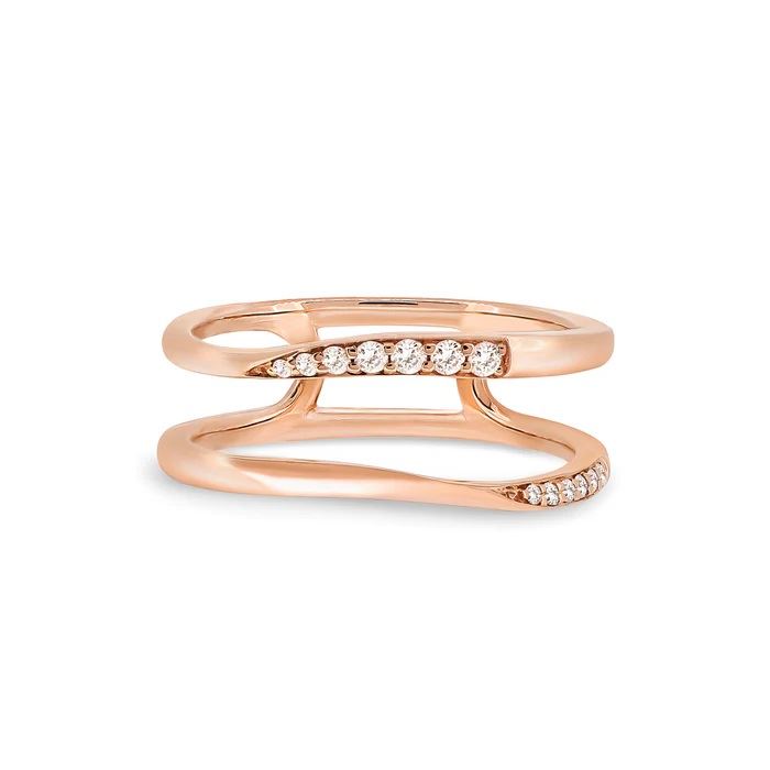 線條流暢,鑽石的光芒隨手指擺動而流轉,這款戒指非常適合那些既想佩戴精緻小巧的飾品,又想展現個性的日子。